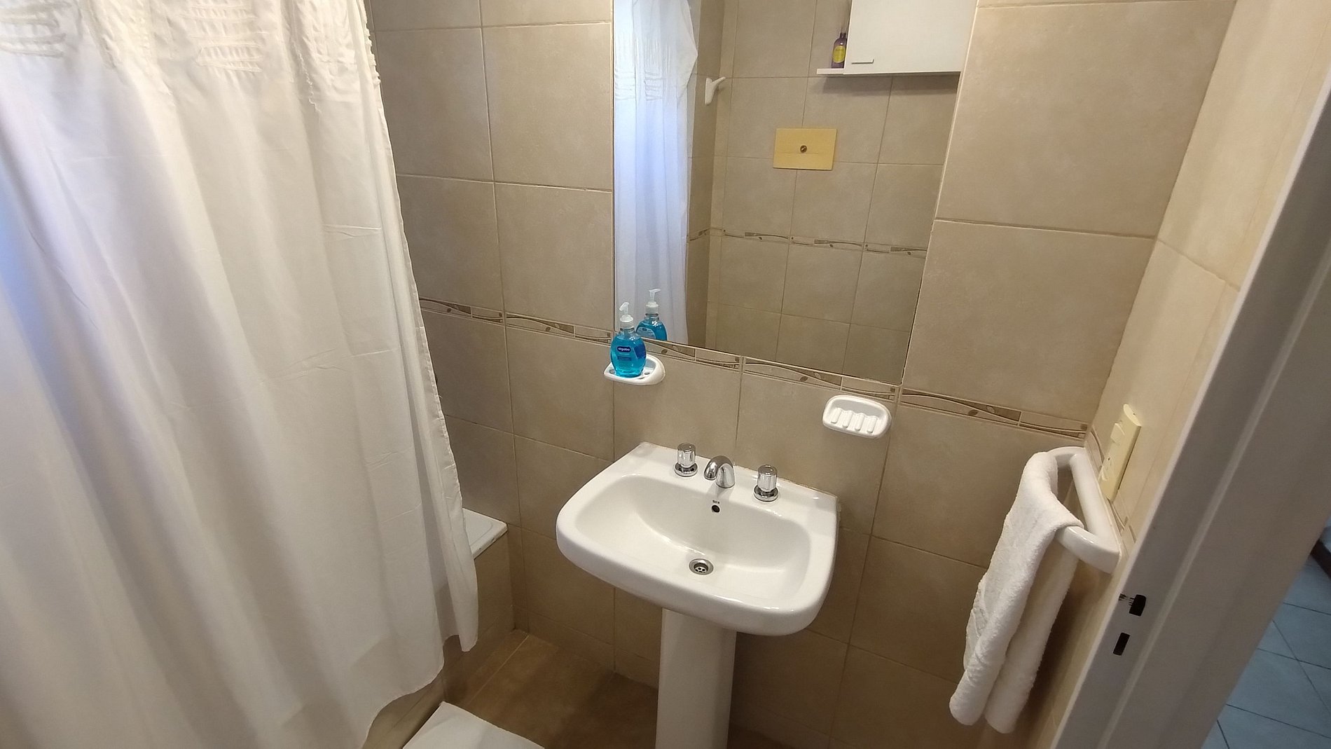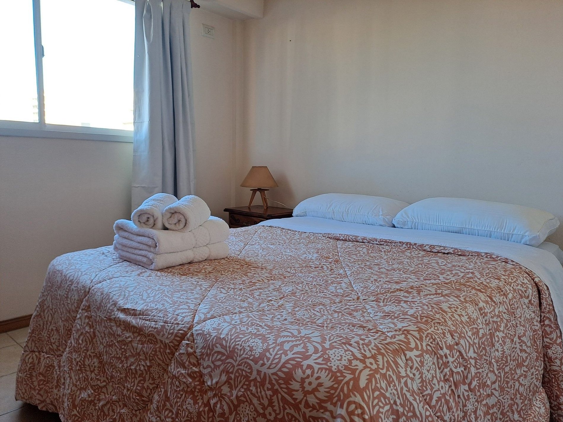 Equipment: Gas stove, refrigerator, microwave, smart TV with Chromecast, WIFI, air conditioning in the living room, turbo fan, gas heaters, complete set of dishes, table, chairs, single sofa bed, and double bed. Provided with sheets, blankets, one set of towels per person; toilet paper, kitchen paper, detergent, shampoo, conditioner, and liquid hand soap.