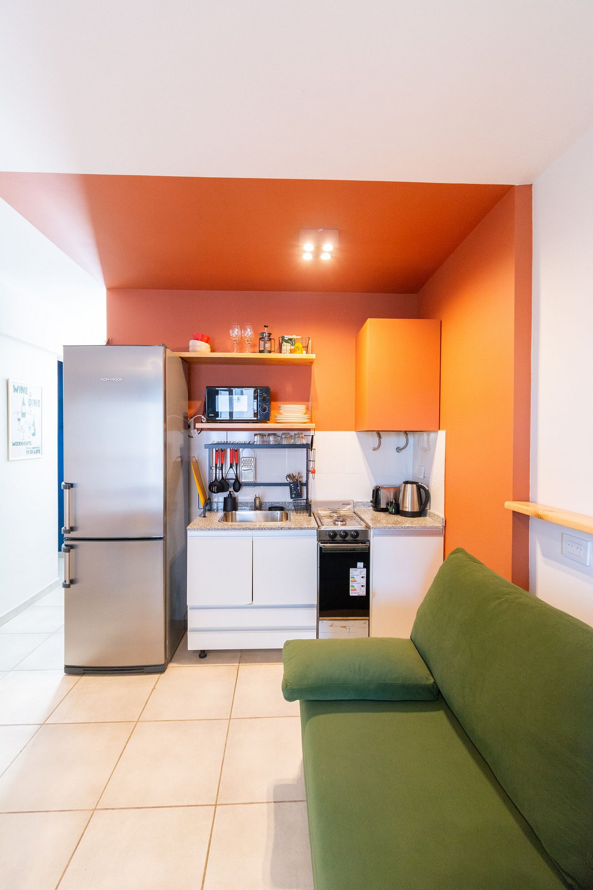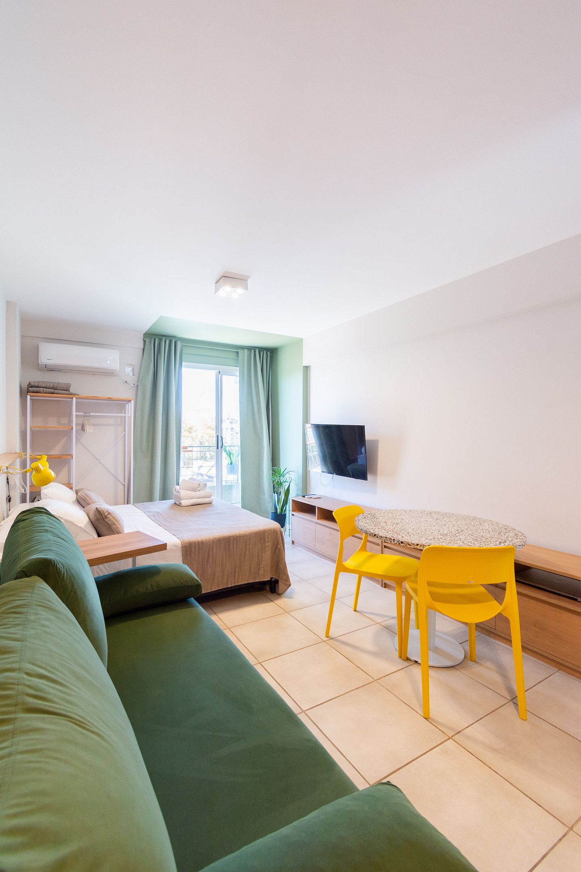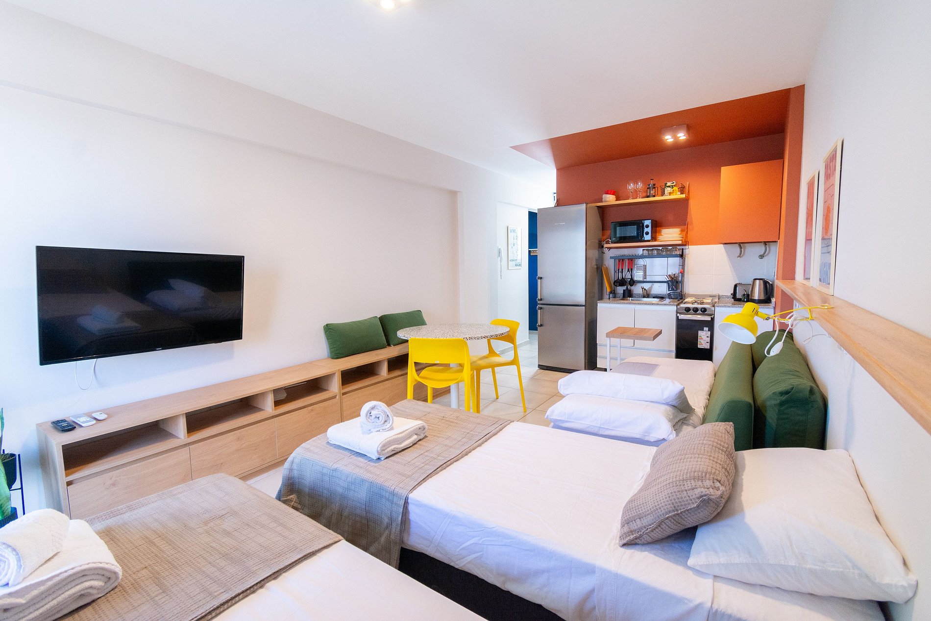 Hornera Caffe is a unique studio apartment filled with color and personality. Though small, the space was thoughtfully designed to avoid monotony. We personally took care of every detail to offer comfort and versatility with practical, quality furnishings. We'll welcome you with everything you need so you can start your stay worry-free. We're just one block from the bus terminal, Mercado del Patio, and the Bioceres Arena.