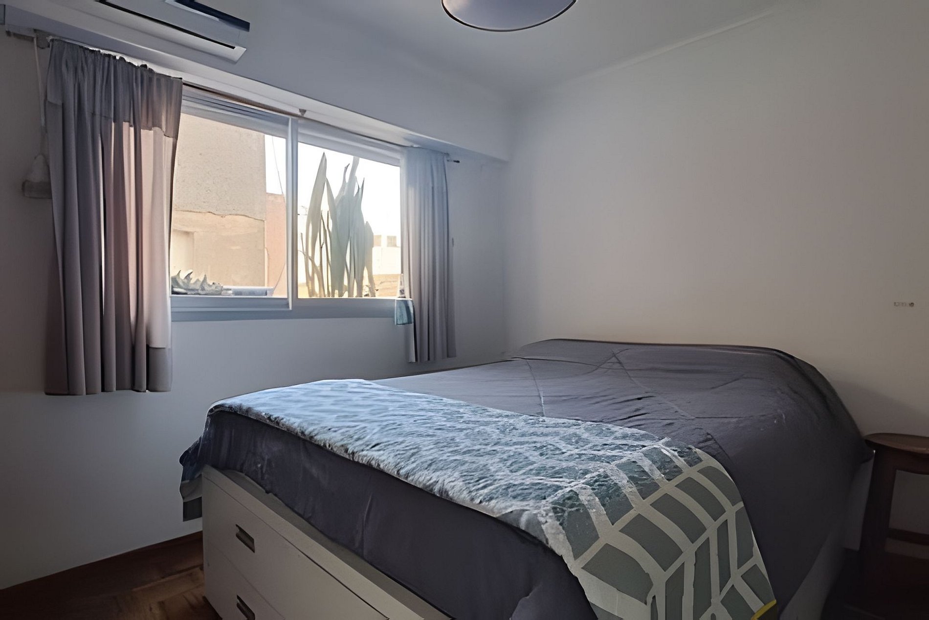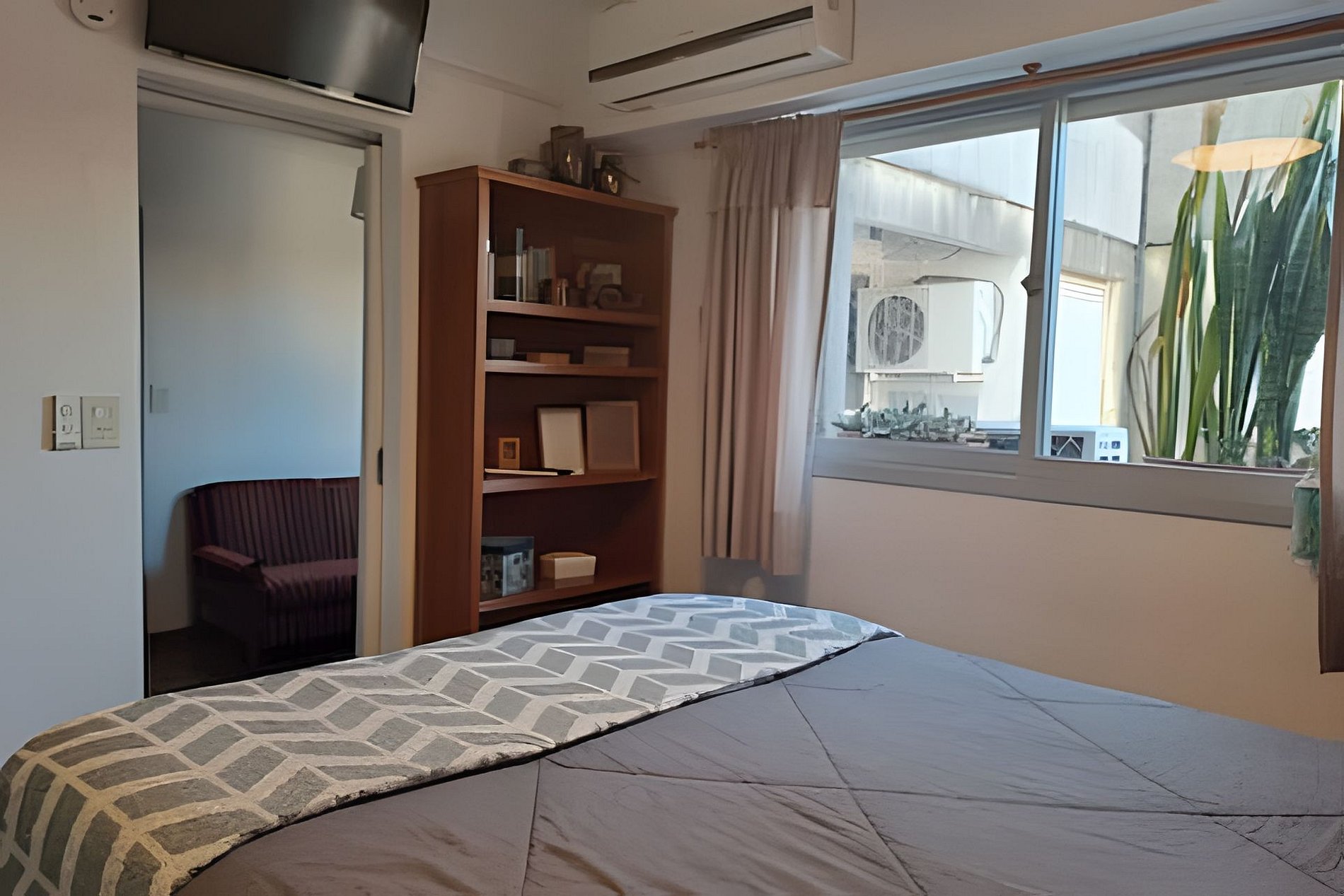 Departamento de un dormitorio, en 2do piso por escalera. Estos es lo que vas a encontrar... Living-comedor: Juego de comedor con mesa y 5 sillas, cama marinera con carro cama, que oficia de sillón, TV smart (sin cable), calefactor a gas y aire acondicionado frío. Estudio: Escritorio con banqueta y sillon de 3 cuerpos. Cocina: Artefacto de cocina a gas de 4 hornallas con horno, microondas, pava eléctrica, tostadora, heladera con freezer, vajilla y batería de cocina completa. Lavadero: Lavarropas automático, tender y batea. Baño completo: Con ducha, bidet y duchador. Dormitorio: Cama matrimonial con espacio de guardado, espacio de placard con barral con perchas (solo un sector, ya que el resto lo usa Mai), ventilador, aire acondicionado y TV con Roku, detector de monóxido de carbono, Almohadas y ropa de cama. Se entregan sábanas, frazadas, 1 juego de toalla y toallón por persona. También papel higiénico y de cocina, detergente, champú, crema de enjuague y jabón líquido de tocador, para iniciar la reserva (sin reposición).